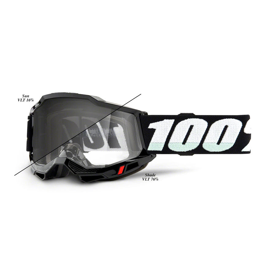 100% Accuri 2 Woods Goggles - Black/Photochromic. The 100% Accuri 2 Woods Photochromic sets the benchmark for a premium performance goggle. Delivering utmost protection visibility and comfort for sight to line while performing. Now with a 17.5% larger vertical field of view.Improved fitment and seal with increased field of view