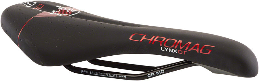 Chromag Lynx DT Saddle - Chromoly Black/Red. The Lynx crosses several categories: Its an excellent saddle for light all mountain setups yet the low profile design is also popular with freeride and downhill riders. The Lynx DT features a synthetic top.Intended Use: All mountain or light DH/Freeride