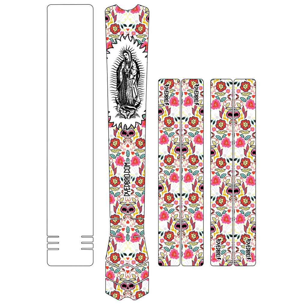 Kit includes: 1 x top tube protector, 1 x downtube protector, 2 chainstay protectors, 2 x seat stay protectors, 2 x extra pieces for larger bike frames