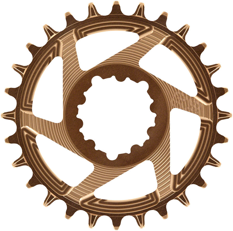 e*thirteen Helix R Guidering - 28t 11/12-Speed 3mm Offset SRAM 3-Bolt DM Bronze. Helix R SRAM Direct Mount Chainrings offer a true upgrade solution for SRAM 3-Bolt MTB crank users (including DUB) to achieve cross compatibility with both SRAM™ and Shimano™ 11 and 12-speed drivetrains.Forged from 7075- T7 aluminum then extensively CNC optimized for industry leading weights and a unique high-end full CNC aesthetic