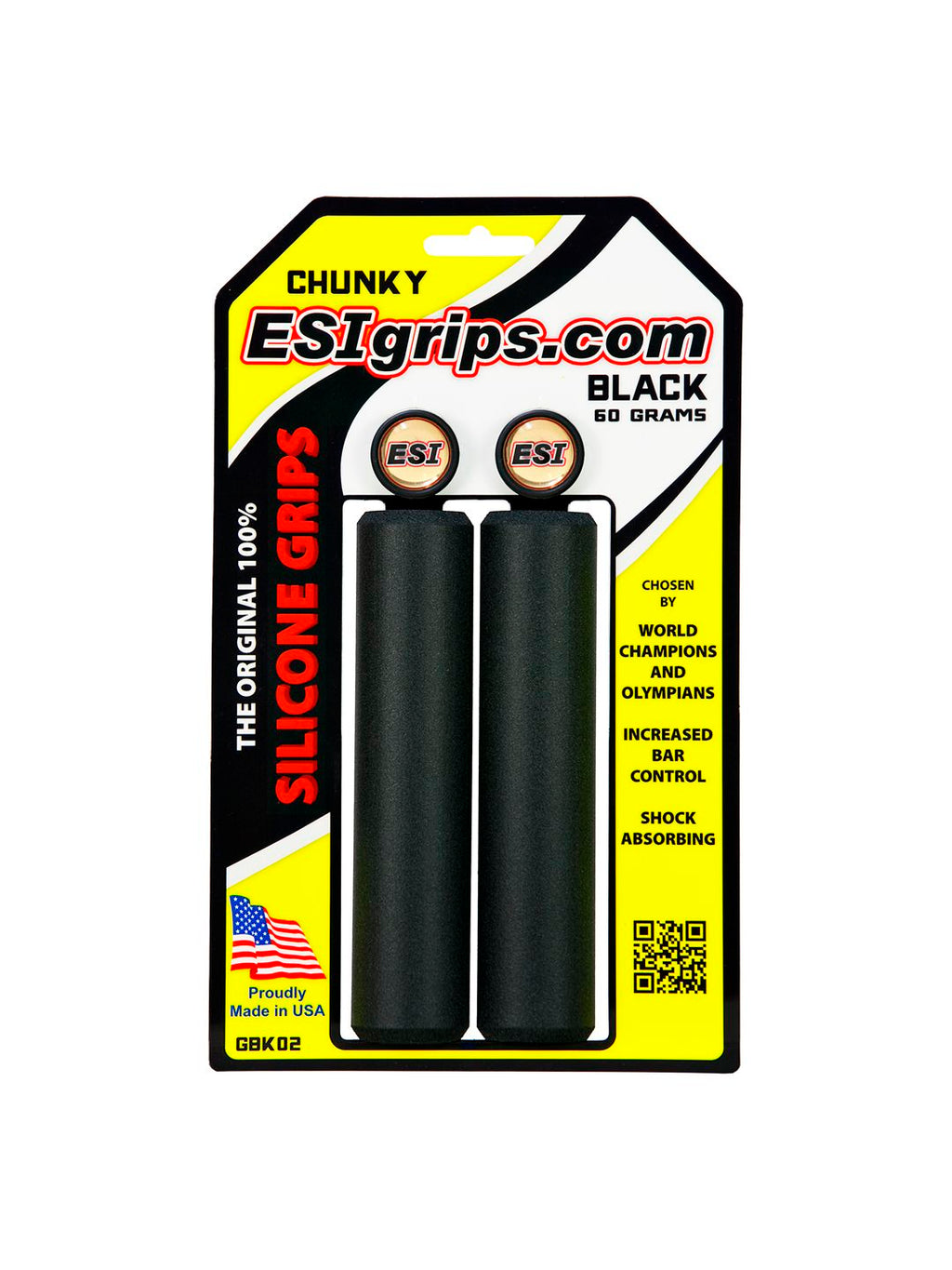 ESI Chunky Grips - Black. A 32mm diameter 100% silicone grip that provides shock absorption and increases comfort and control on the bike.Wet or dry your hands wont slip but the grip will never feel sticky