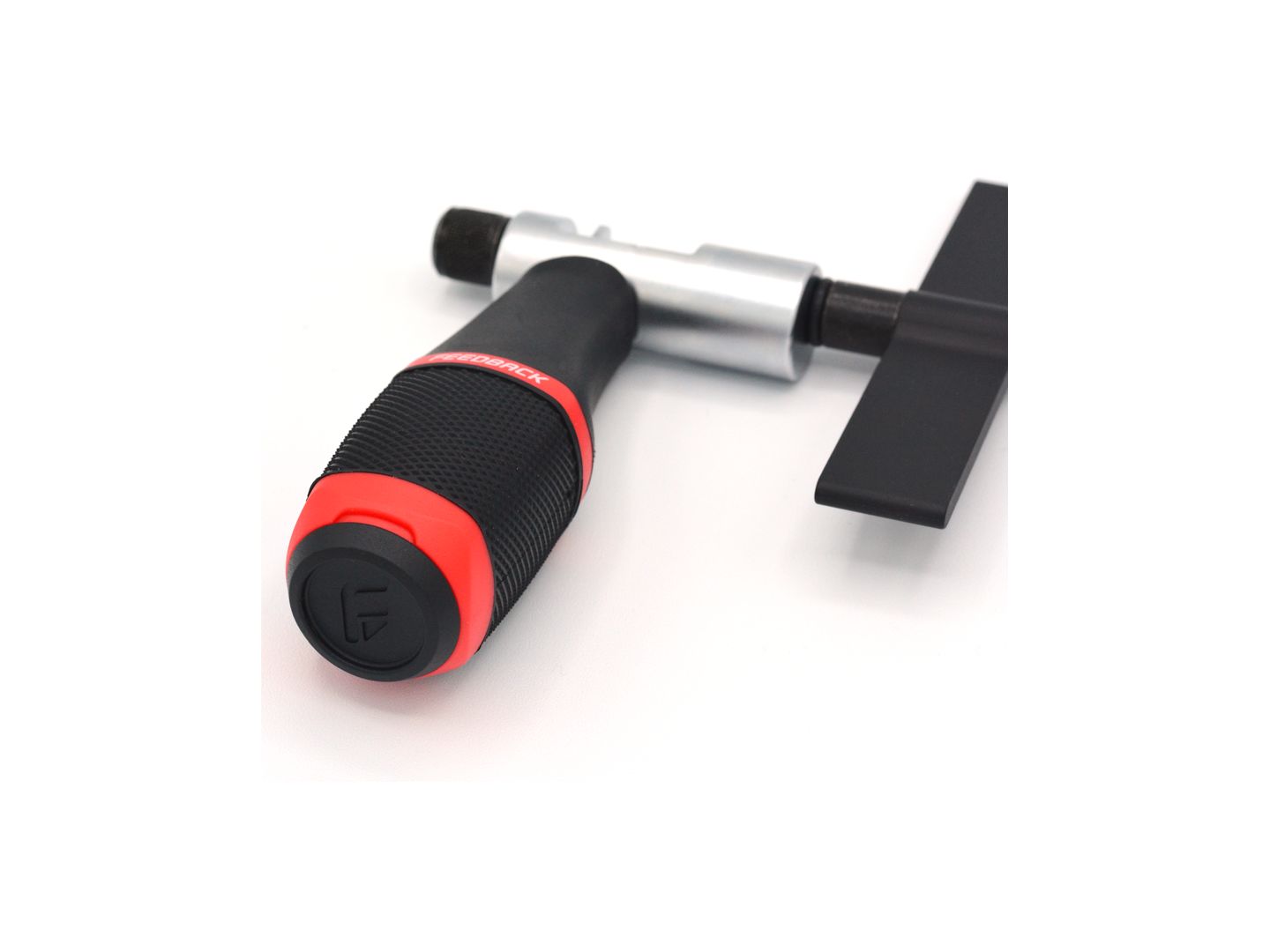 Broad high-leverage pin press paddle makes quick work of the most stubborn chain pins