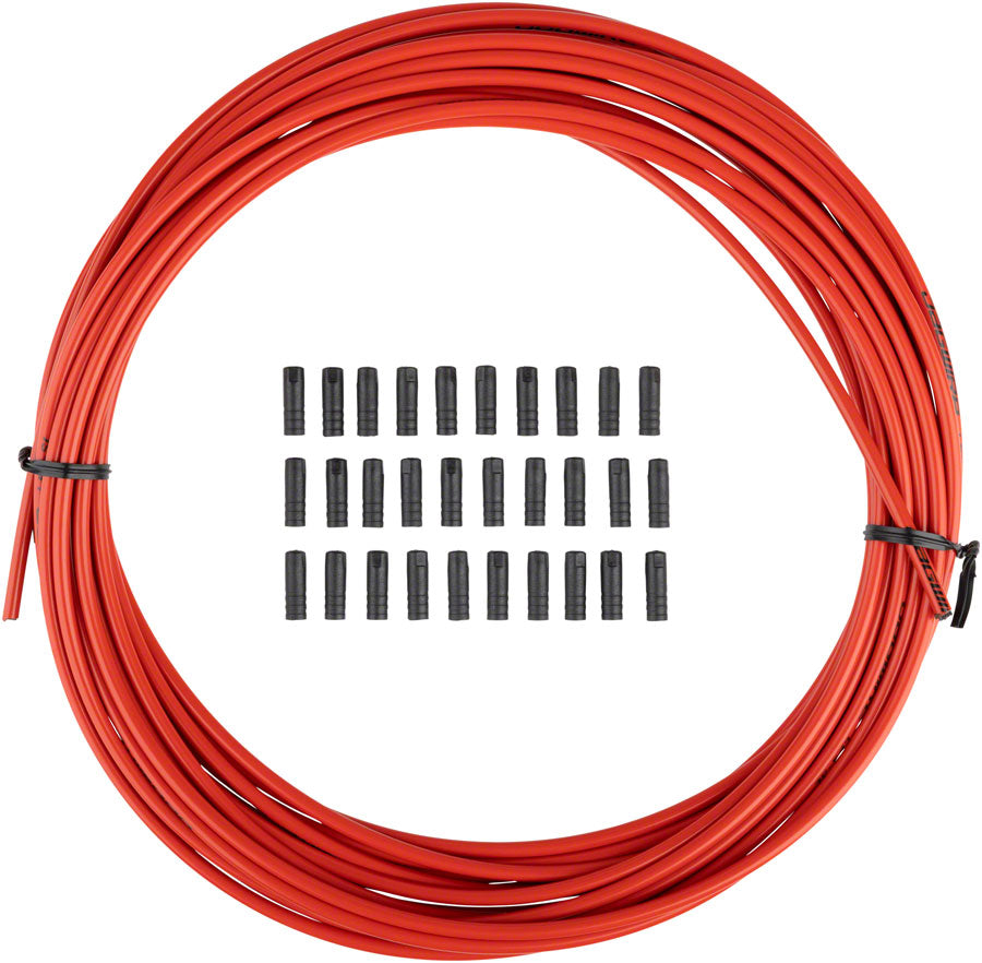 Jagwire 4mm Sport Derailleur Housing with Slick-Lube Liner 10M Roll Red. 10 meter rolls of Jagwire Sport derailleur housing are pre-lubricated and come in a variety of color options.Linear strand construction provides stiffness while remaining suitably bendable