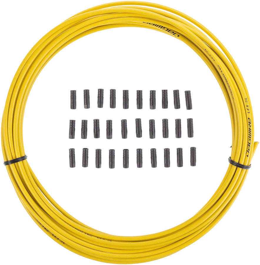 Jagwire 4mm Sport Derailleur Housing with Slick-Lube Liner 10M Roll Yellow. 10 meter rolls of Jagwire Sport derailleur housing are pre-lubricated and come in a variety of color options.Linear strand construction provides stiffness while remaining suitably bendable
