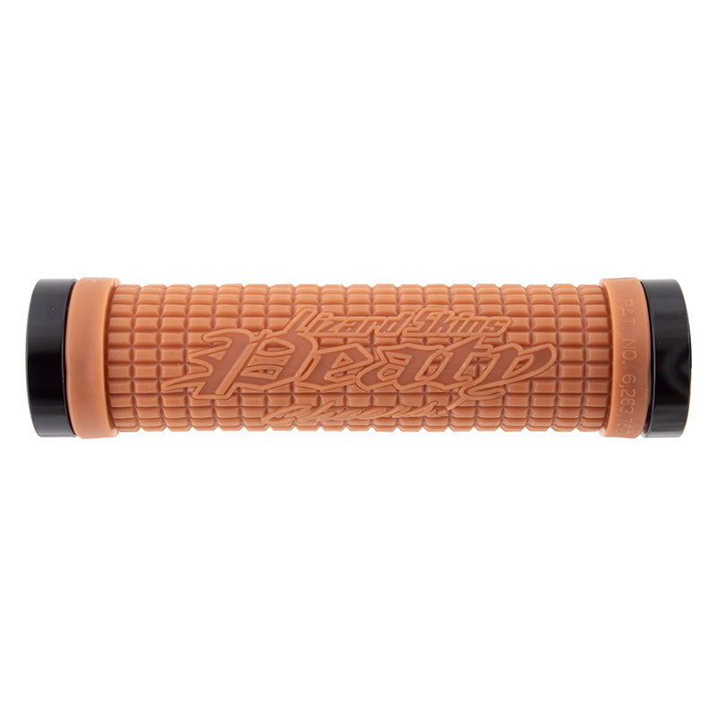 Lizard Skins Peaty Grips - Gum Lock-On. The Steve Peat signature Peaty grips feature a thinner smaller block pattern.Weight (with plugs): 112 grams
