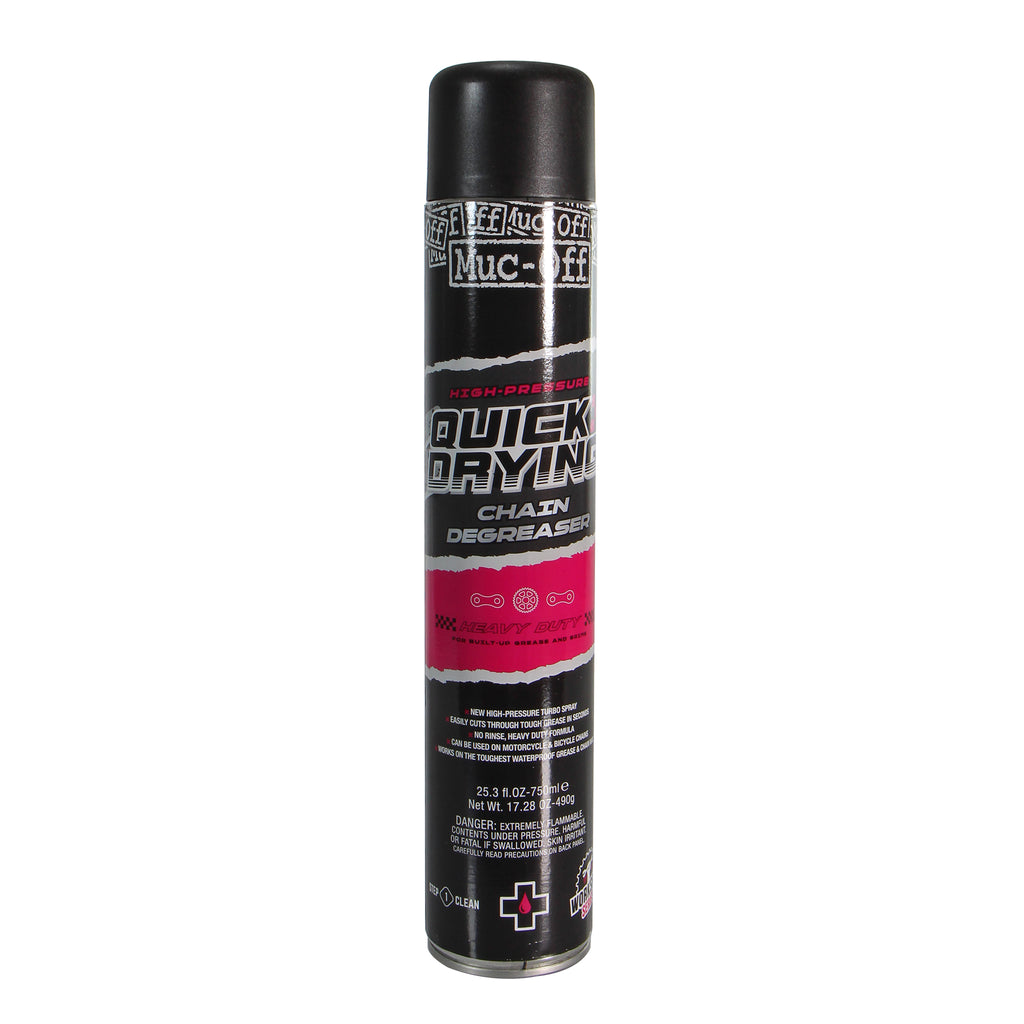 Advanced quick drying chain cleaner that has been designed and tested to remove heavy chain grime quickly and safely without the need for rinsing
