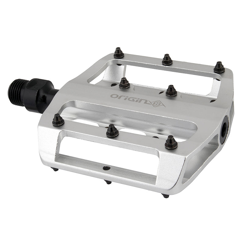 Extruded and CNC machined AL6061-T6 pedal body. 2 sealed bearings and 1 DU sleeve bushing. 9/16` CNC chromoly spindle. 80mm x 85mm x 16mm concave platform for small feet. M4-8mm replaceable pins