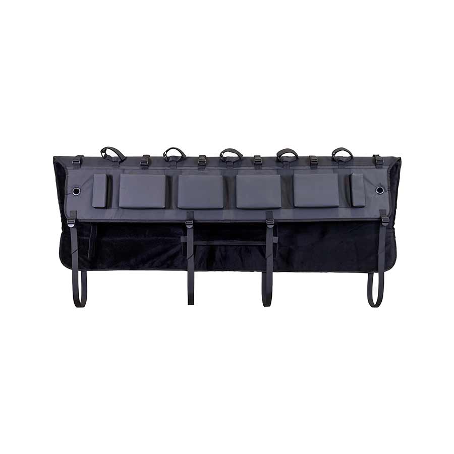 RaceFace T2 Tailgate Pad - Black LG/XL. RaceFaces T2 pad is made to fit any shape of tailgate and has an adjustable rear camera panel. The T2 can carry up to 6 bikes using raised bumpers and downtube straps to prevent any damage during shuttles.