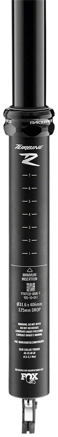 RaceFace Turbine R Dropper Seatpost - 31.6 125mm Travel Black. The Turbine R dropper brings you the function and reliability you deserve with Race Face aesthetics to complete your build.