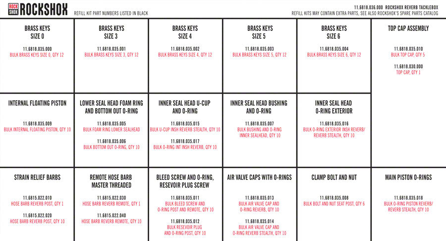 RockShox Reverb Tackle Box for A2 B1. Service kit to assist in scheduled maintenance and/or rebuild of RockShox dropper seatposts.