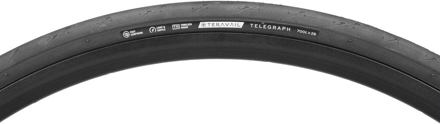 Teravail Telegraph Tire - 700 x 28 Tubeless Folding Black Light and Supple. Telegraph is a high-volume performance road tire. It offers all the grip and rolling speed of lower-volume road tires with the comfortable ride of a larger 120 tpi casing. Telegraph’s tread pattern features a slick center tread for carrying speed and a textured transition area for cornering grip. Telegraph is made for anyone who wants to elevate the road riding experience.Designed and inspired by our experiences riding and racing on pavement