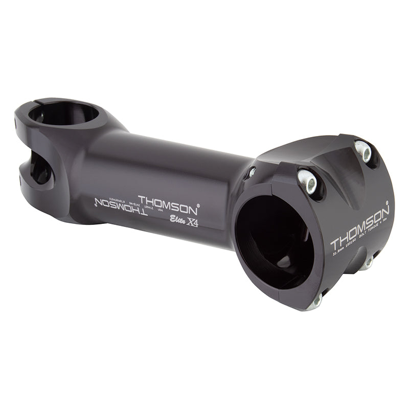 Thomson Elite X4 Mountain Stem - 130mm 31.8 Clamp +/-10 1 1/8" Aluminum Black. Thomson X4 Mountain Stems feature smooth edges for carbon bar compatibility and use bolts that are custom heat treated with corrosion preventative plating.Machined 7000 series extruded bar stock