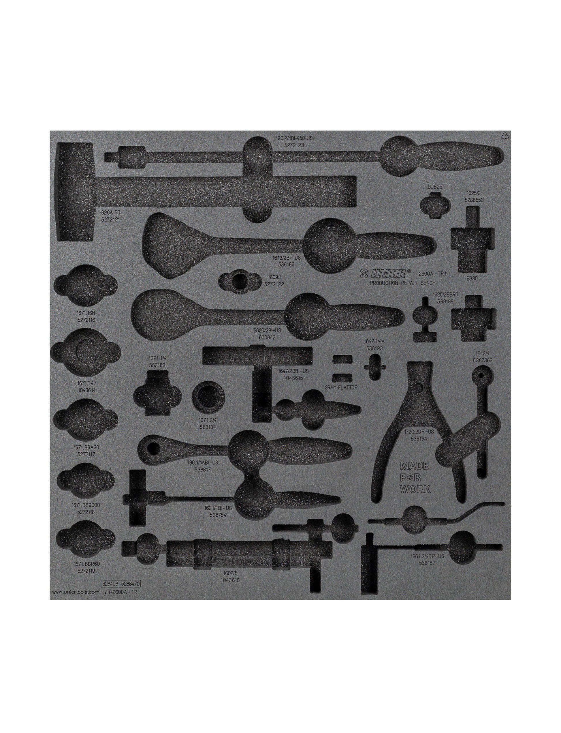 - Includes foam organizer, designed to fit with Unior workbenches
