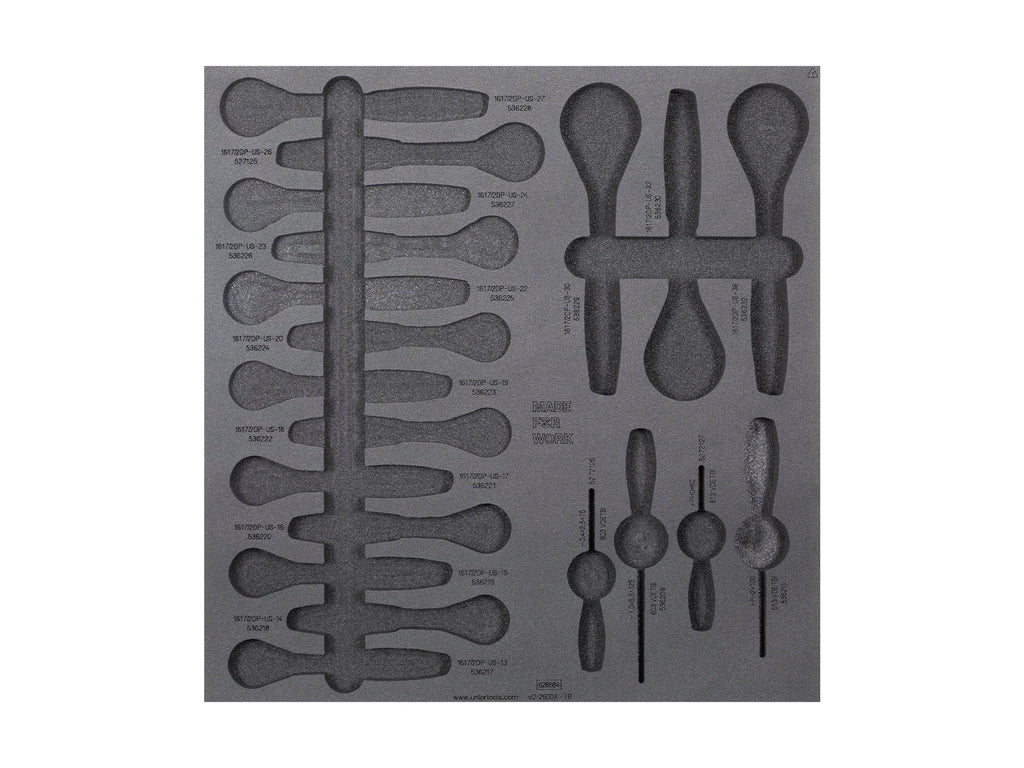 • Foam insert dimensions are 22" (559mm) wide, 22.4" (569mm) deep, and 1.25" (32mm) tall
