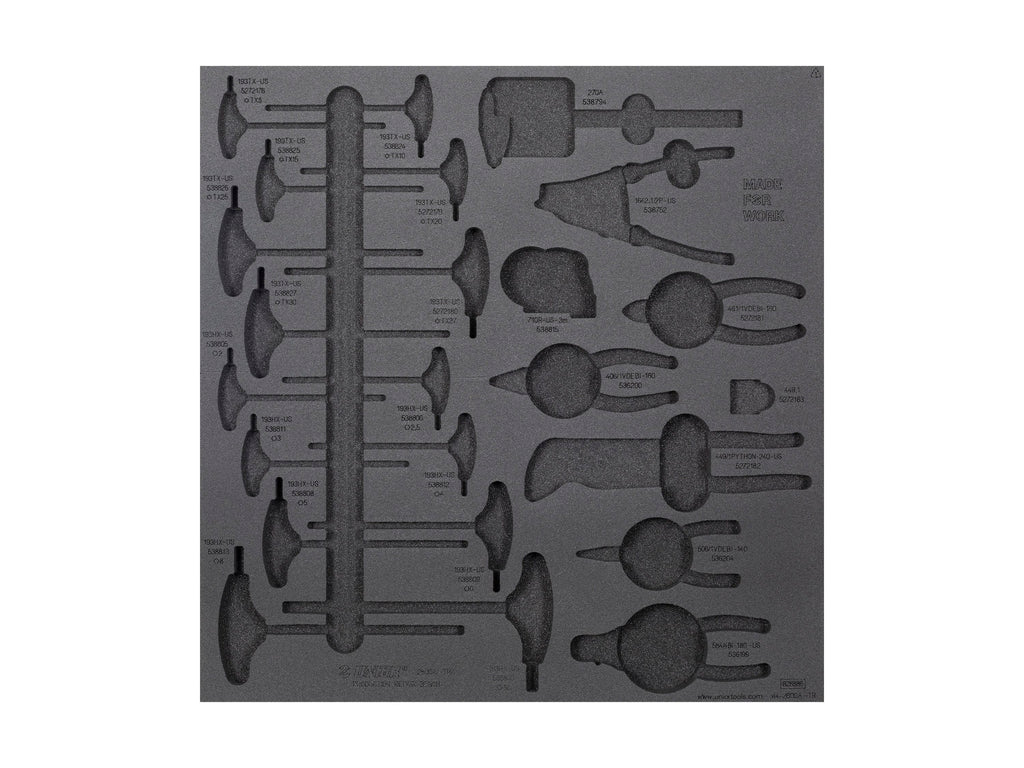 • Foam insert dimensions are 22" (559mm) wide, 22.4" (569mm) deep, and 1.25" (32mm) tall