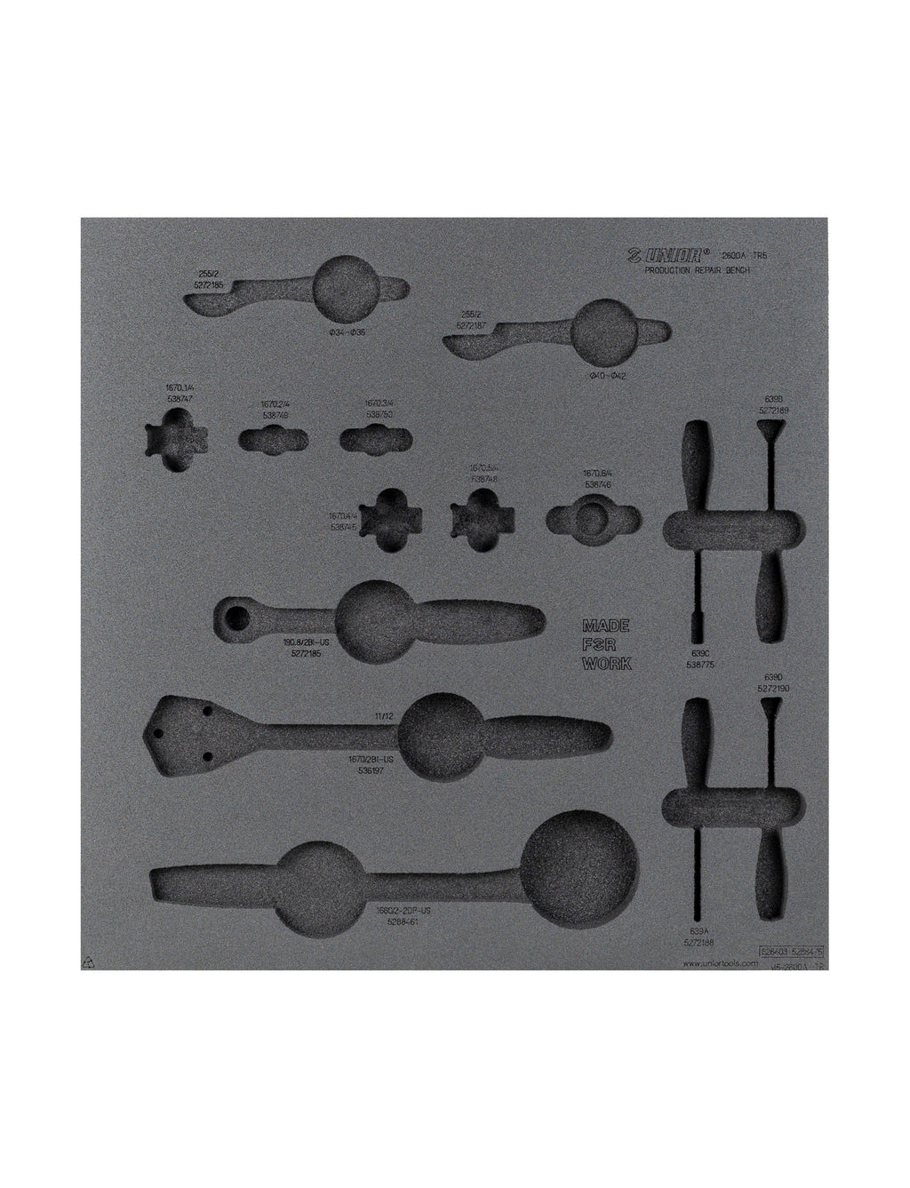 • Includes foam organizer, designed to fit with Unior workbenches