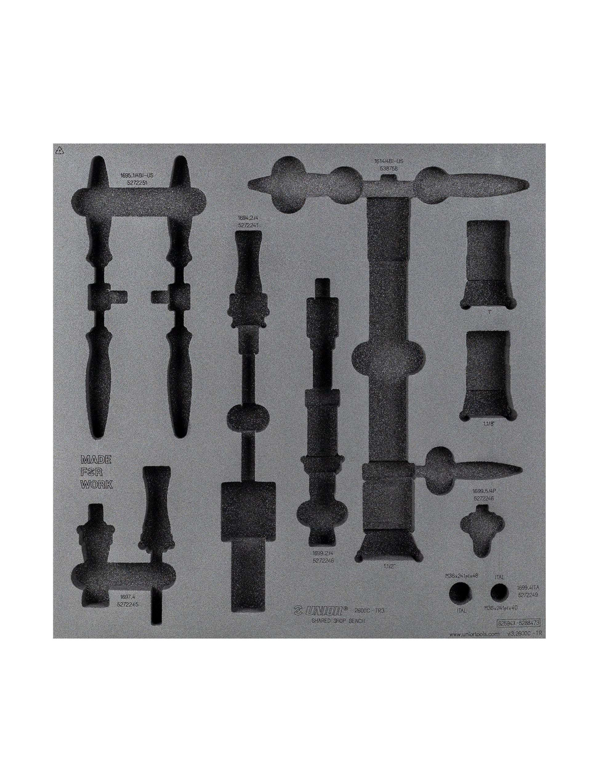 - Includes foam organizer, designed to fit with Unior workbenches