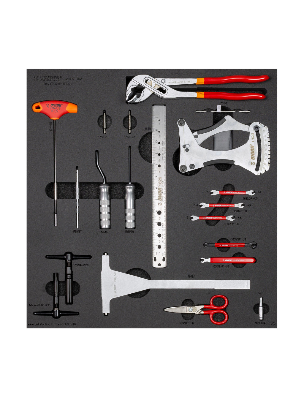 • Includes tools and foam organizer, designed to fit with Unior workbenches
