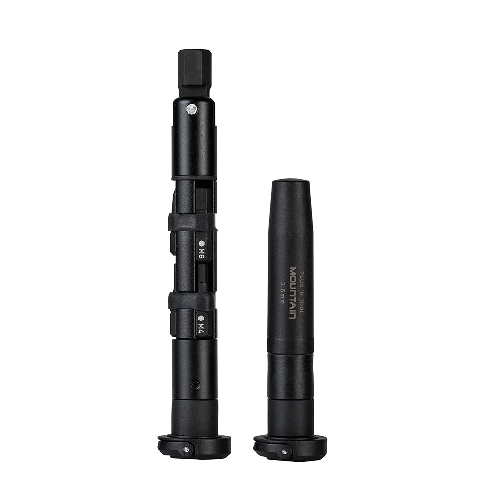 Mountain model fits bars with 18-21.2mm diameter and includes: 3, 4, 5, 6, and 10mm hex bits T25 Torx bit, #2 Phillips bit, 3.5mm plug insertion tool, and 3 x 50mm repair plugs