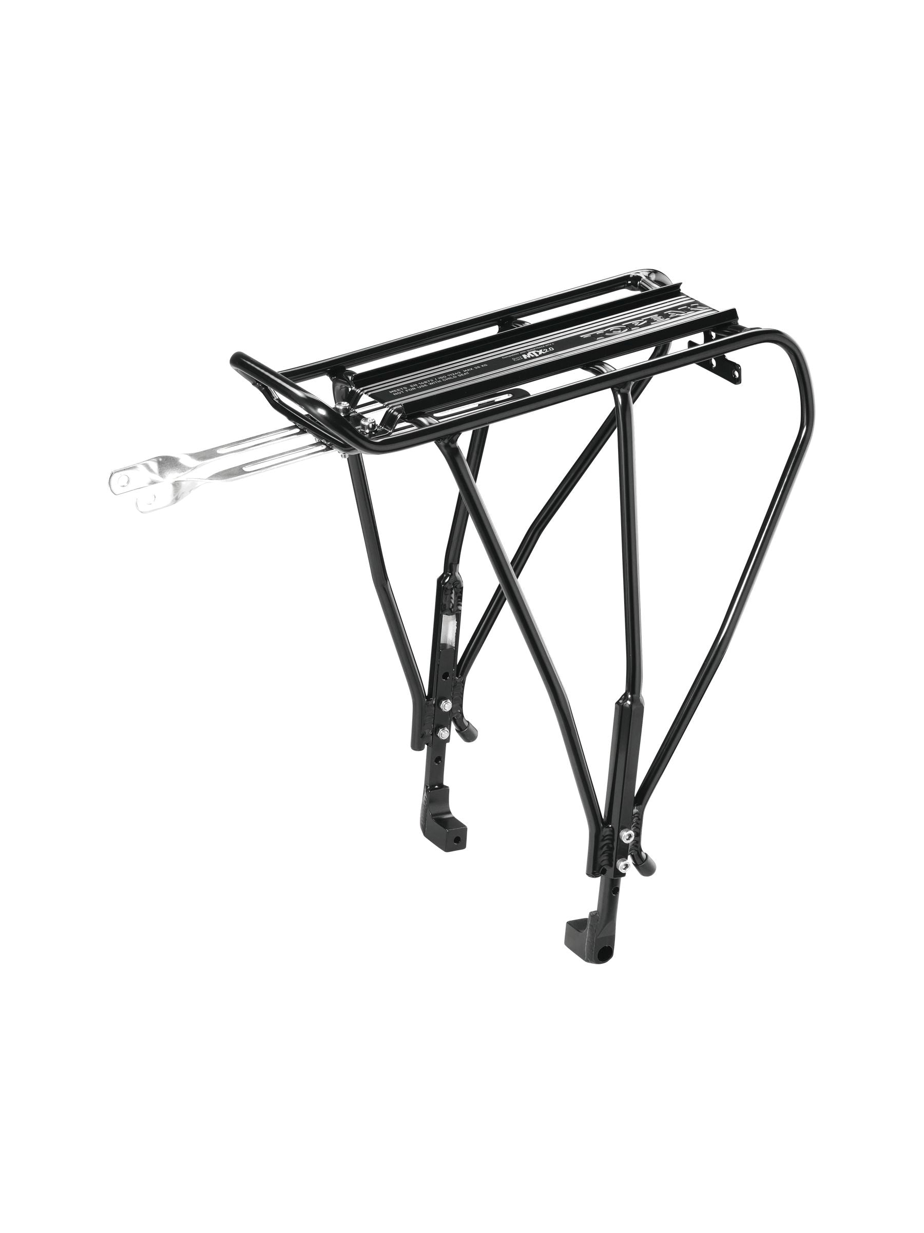 One-size-fits-all aluminum tubular rear rack equipped with adjustable legs to fit most 24� to 29� wheel MTB and 700C touring bikes with disc brakes. MTX QuickTrack plate is compatible with any Topeak MTX TrunkBag MTX rear basket and most other rack packs and panniers on the market. 6061 T6 aluminum construction with stainless steel hard-ware 3-point adjustable extenders. Backwards compatible with all original (1.0) MTX accessories