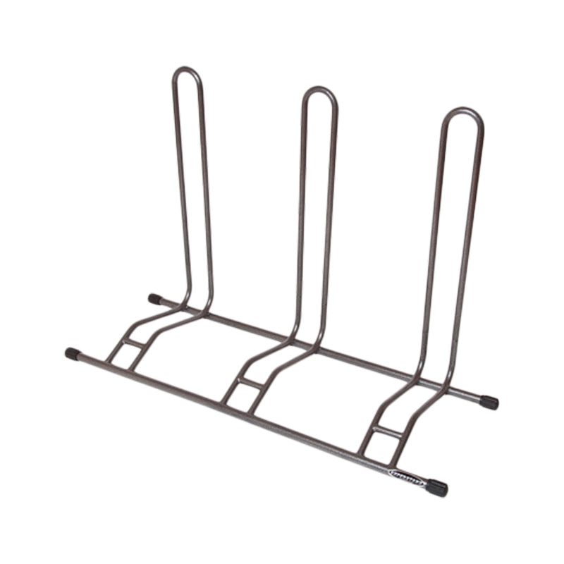 Available in 1 2 3 and 4 bike modules (400mm spacing between bikes). The base comes fully welded as an assembly simply push the top hoops onto the base uprights and click over the spring buttons. Suits BMX 20� wheel size up to and including comfort bikes road bikes MTB up to 2.5� wide tires and 29er wheels. Heavy duty black / silver speckle powder-coated steel tubing construction. Rubber feet caps at each end of the main tubing rails. Commonly used in bicycle shops providing clean neat non-intrusive simple to use bicycle displays. Use them back to back as an island display or end to end along walls. Can be positioned in various layouts and configurations to suit any bicycle shop display area. Also great for home garage workshop etc for families to store multiple bicycles. Also great for bicycle events where mass quantity bicycle parking is required